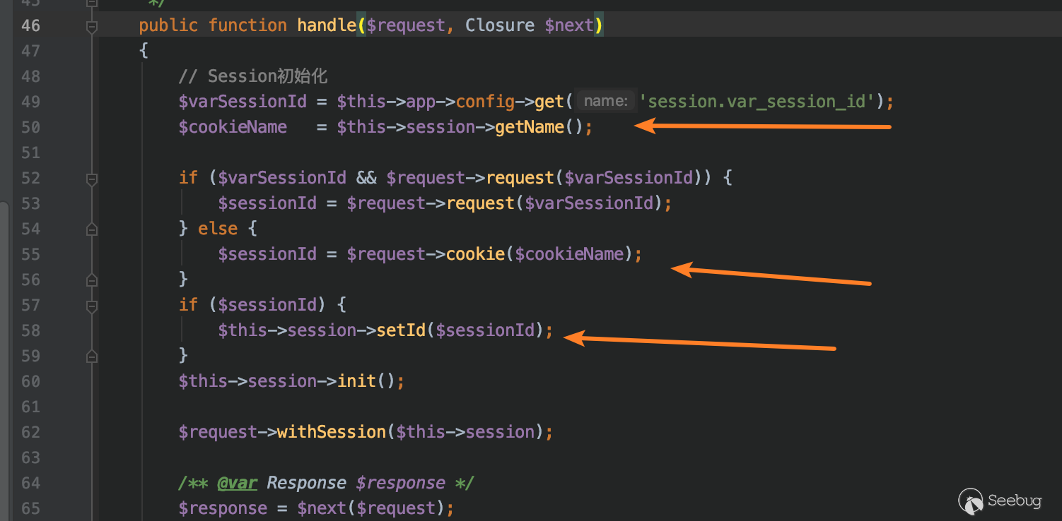 。看一下调用setId的地方:vendor/topthink/framework/src/think/middleware/SessionInit.php:46