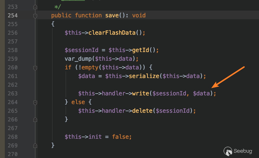这里调用了一个write函数,跟进一下:vendor/topthink/framework/src/think/session/driver/File.php:210