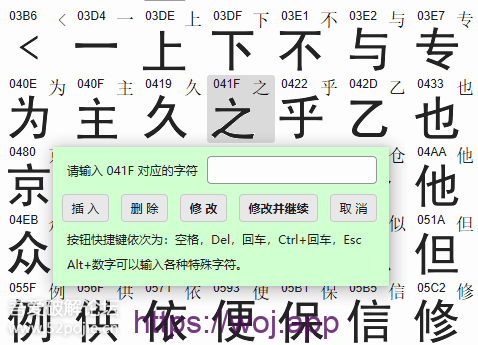 3、按F4,识别右侧窗口中渲染出来的全部字符。点击字符图像可以人工校正。具有插入、删除、修改、修改并继续,等多个功能。